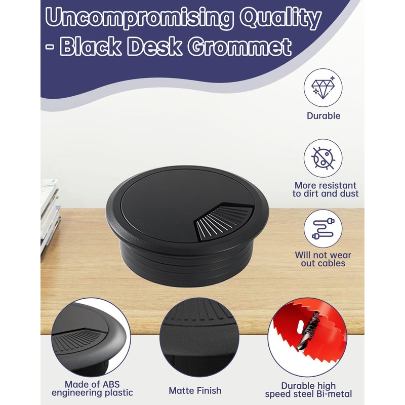 - Material: Hole Saw - Features M42 cobalt bi-metal cutting edge for shock-resistant teeth that resist stripping | Desk Grommet - Made of durable and corrosion-resistant ABS for excellent performance.