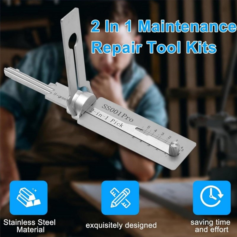 - 2 IN1 LOCK PICK AND DECODER: This ma/ster key decoder lock picking tool combines two functions in one device. This key decoder lock pick has decoding and unlocking functions. Therefore, this stai/nless steel ma/ster key decoder is an economical and efficient solution. Using this 2 in 1 ma/ster key decoder lock picking tools ensures that you decode and unlock accurately. At the same time, our lock pick decoder for auto minimize the damage to the lock itself