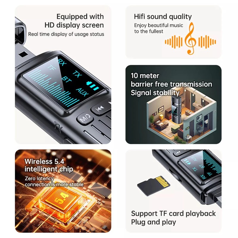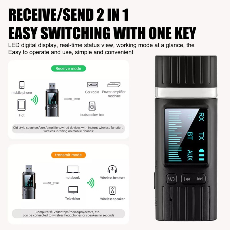 2 in1 Wireless Bluetooth5.4 Transmitter Receiver Adapter Audio 3.5mm Jack Aux