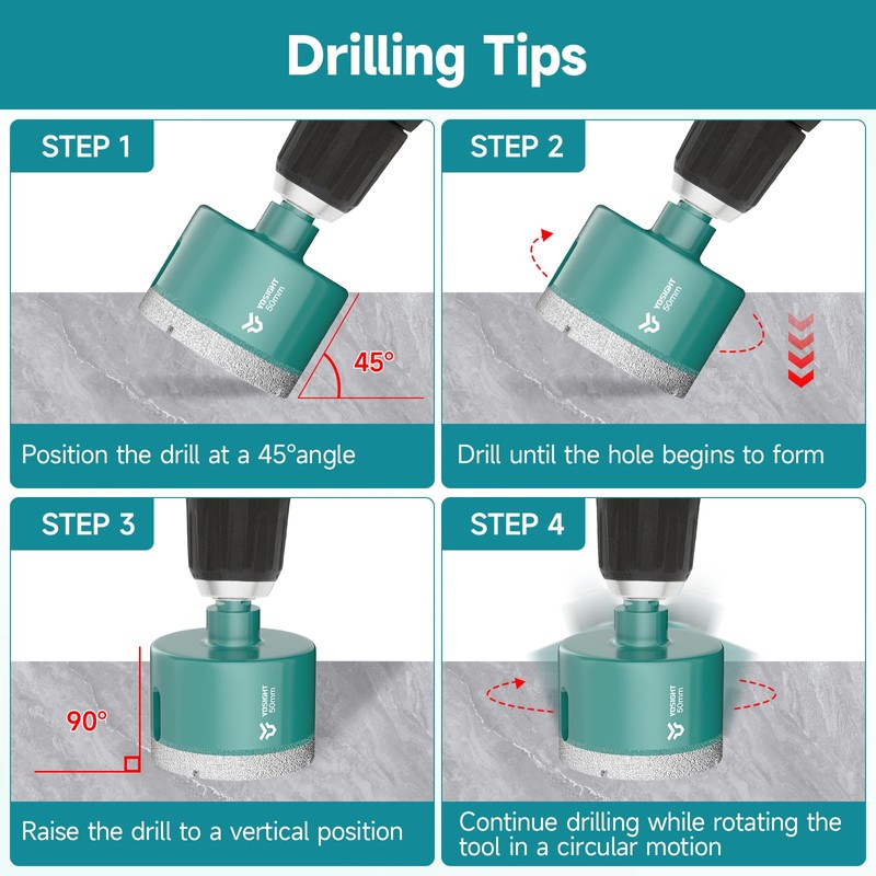 - Wide Application: Ideal for kitchens, bathrooms, decoration, flooring, furniture, and wall installation; Efficiently drills hard materials like porcelain tile, ceramic tile, granite, stoneware, marble, and quartz; Perfect for home renovation, commercial construction, and industrial use