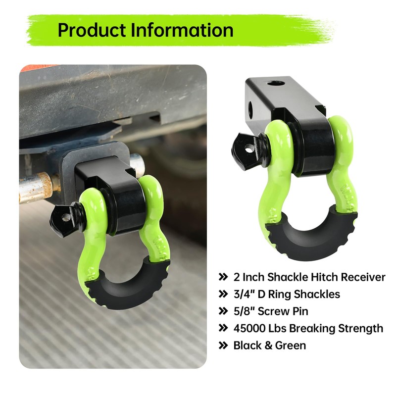 2 Inch Shackle Hitch Receiver, moafaye 3/4" D Ring Shackles, 45000 Lbs Breaking Strength, Towing Accessories for Vehicle Recovery. (Black & Green)