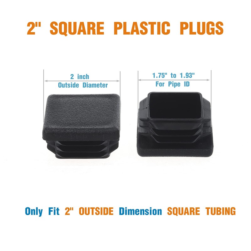 - [How to Choose] – The 2" Square Plastic Plugs ONLY fit 2-Inch (2.0") OUTSIDE DIAMETER (not inside diameter) SQUARE TUBING or PIPE. Not fit for 2" inside diameter tubing or Pipe, and Not fit for round shape pipe or tubing either.