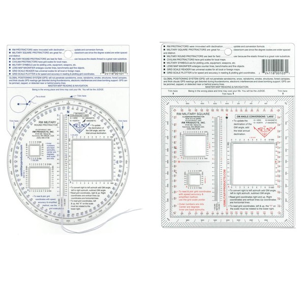 2 Item Bundle - RM Round Military Protractor & RM Square Military Protractor