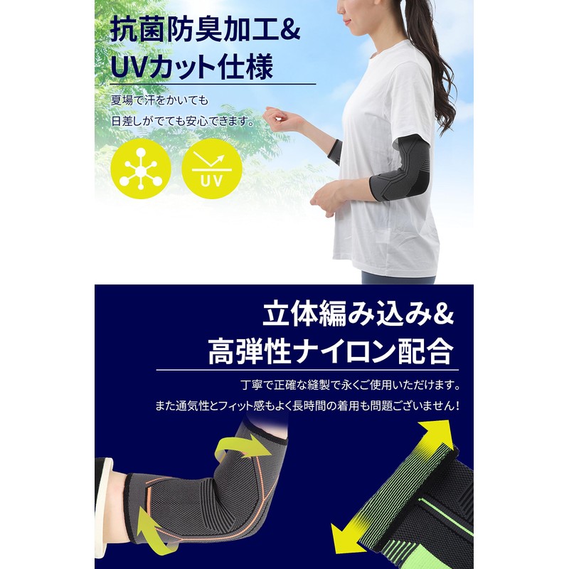 - 【②伸縮性の良さ】強力スパンデックス素材を採用し、肘・腕の形状に沿って密着し、筋肉を保護いたします。