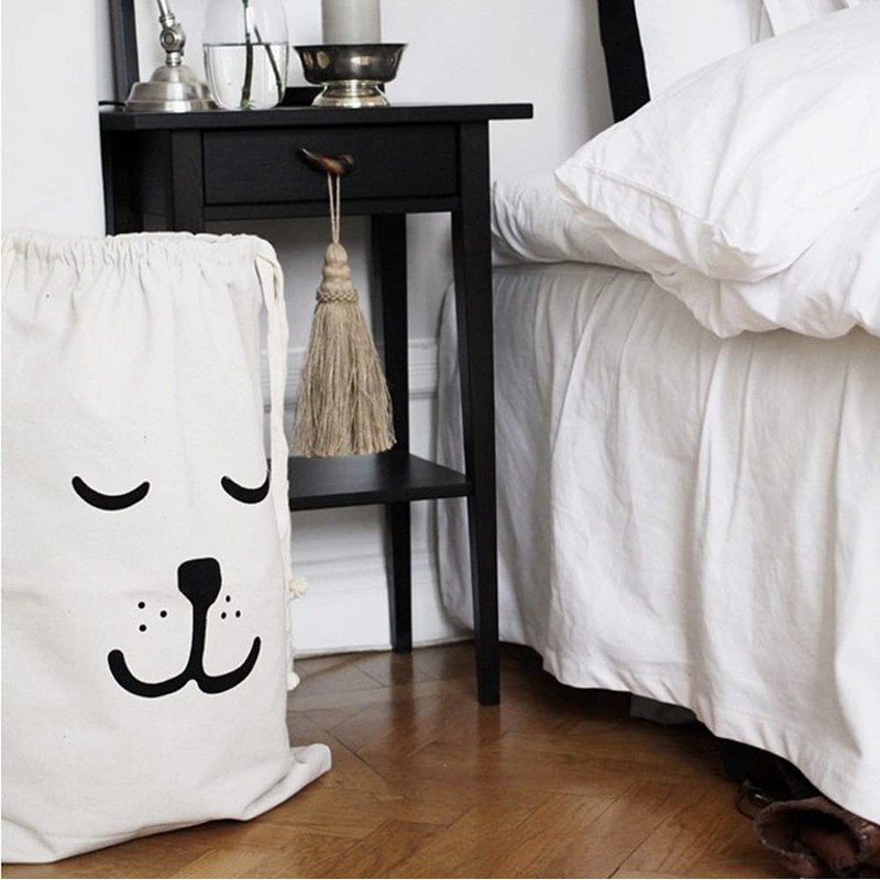 - These laundry bags are designed with simple sleeping bears and smiling bears, cute and elegant.