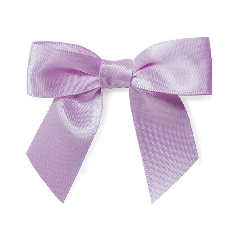 - These Lavender Pre-Tied Satin Bows with an attached 4-1/2" twist tie are perfect to easily close a cellophane treat bag, or to put the finishing touch on a gift bag handle.