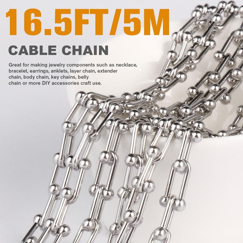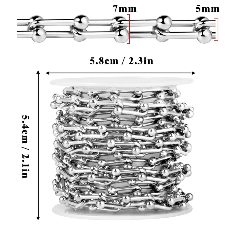 - 【7mm Cable Links Chain】The stainless steel u shaped cable link chain is 7mm thickness, strong and durable for jewelry making.
