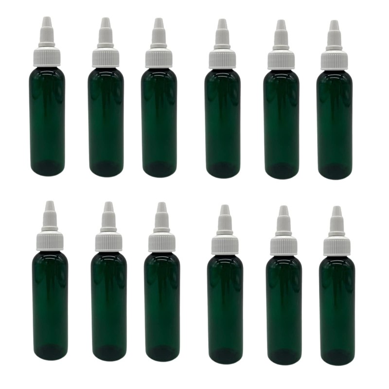 - Package Include: 12 Pack 2 oz each Green Plastic Bottles with White Twist Top Cap