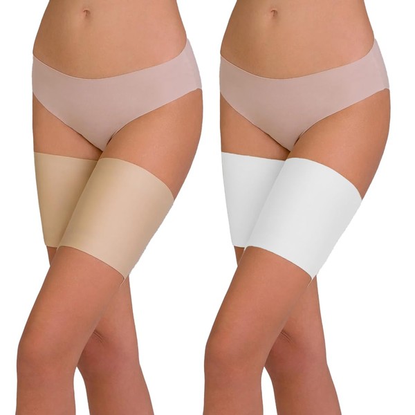 2 Paar Damen-Oberschenkelbandagen, scheuerfrei, reibungsfrei, rutschfestes Silikon (Haut und Weiß, 58–65 cm, Größe M).