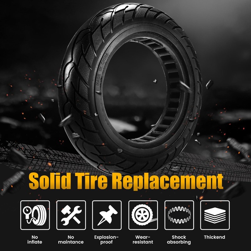 - With no need for inflation, repairs our solid tire offers convenience like no other. Simply install it on your electric scooter and forget about it. Spend less time worrying about tire upkeep and more time enjoying your ride.