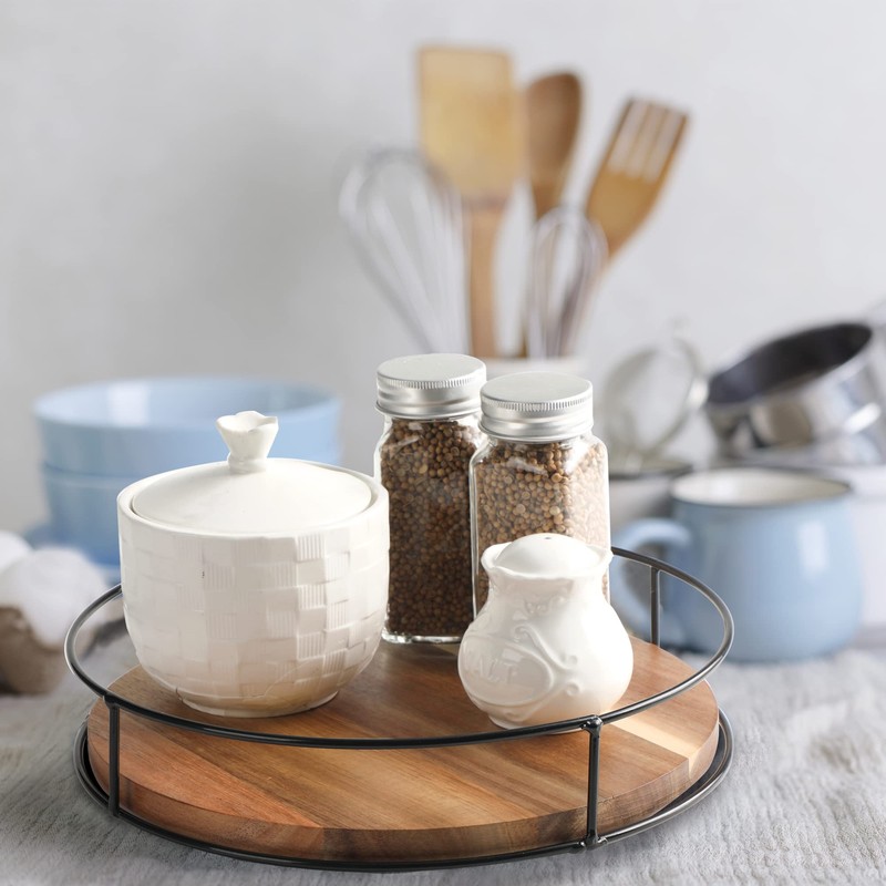 - ✔️【EASY TO CLEAN】➤Easy cleaning is important when it comes to lazy susan turntables for everyday use. For the material of acacia wood, simply wipe it with a damp cloth, do not use it in the dishwasher or soak it in water.