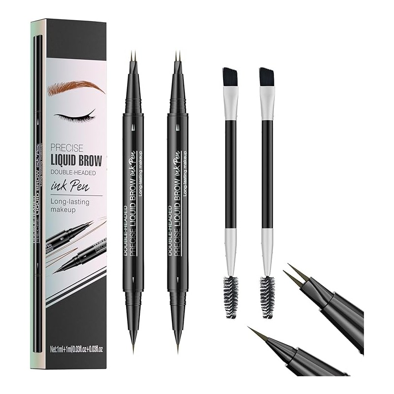 [2 Pack] 2-in-1 Dual-Ended Eyebrow Pen with Micro-Fork-Tip Applicator and Precise Brush-Tip, Eyebrow Pencil (03# Dark Brown)