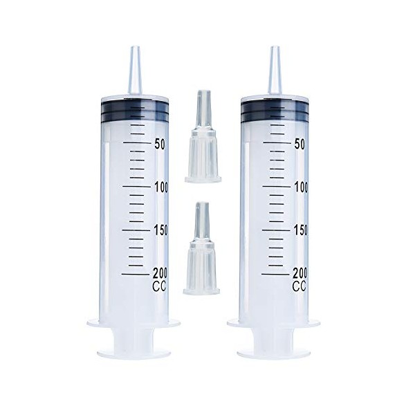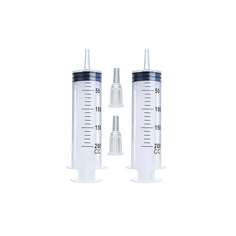 - 2pcs 200ml Syringes: Each syringe is individually sealed, clean, safe and sterile. Great for refilling and measuring essential oil, inks, lubricants, sealants, glues, adhesives, solvents, light oil etc