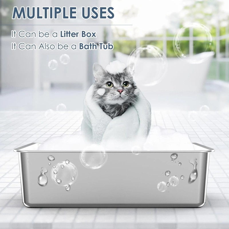 - Clean and Odorless All The Time: Cleaning the high walled steel cat litter box is very easy as waste slides off the smooth and nonstick surface effortlessly, leaving no lingering odors behind. Sturdy stainless steel won't get rusts and scratches where odor can harbor like the plastic litter box does, creating a clean and hygienic environment for your cats