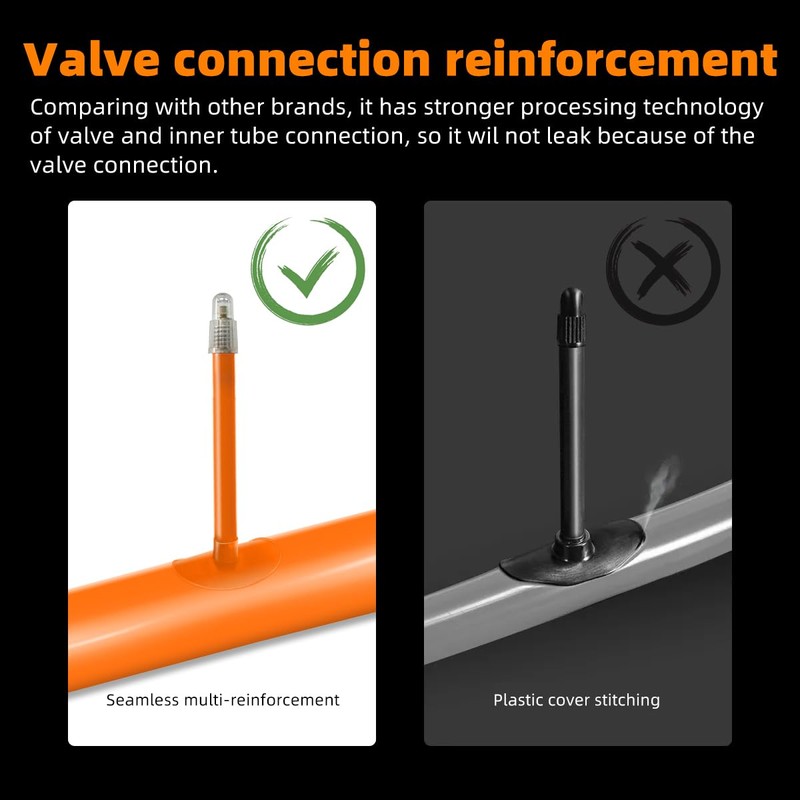 • 【Wear-resistant and durable】The bicycle inner tube adopts a special TPU material, which also greatly improves the durability compared with the traditional rubber inner tube; In addition, the TUP material is oil and water resistant, and has excellent load-carrying capacity and impact resistance