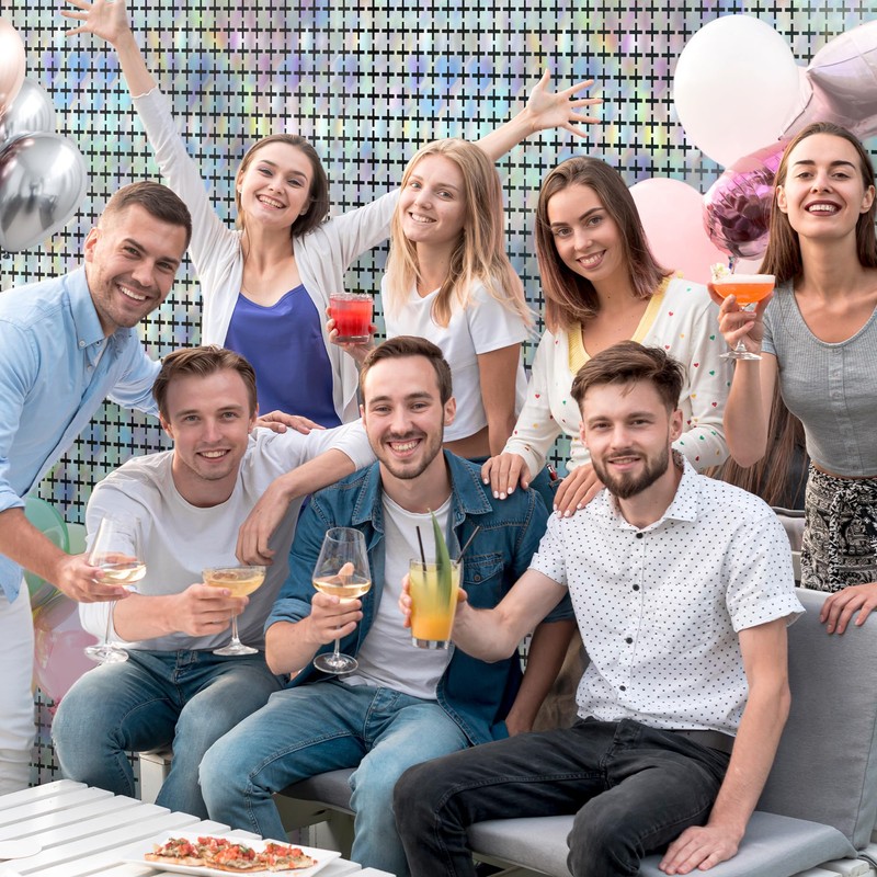 Adorn celebrations of architecture and design with this delightful new décor - a tinsel backdrop laser cut into the precise silhouettes of tiles and dazzled in an array of colors.