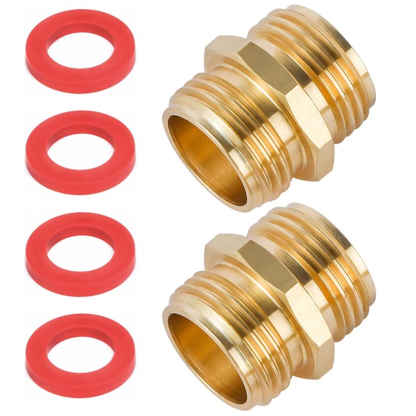 2 Pack 3/4 Inch Brass Garden Hose Adapter Male to Male Quick Connector
