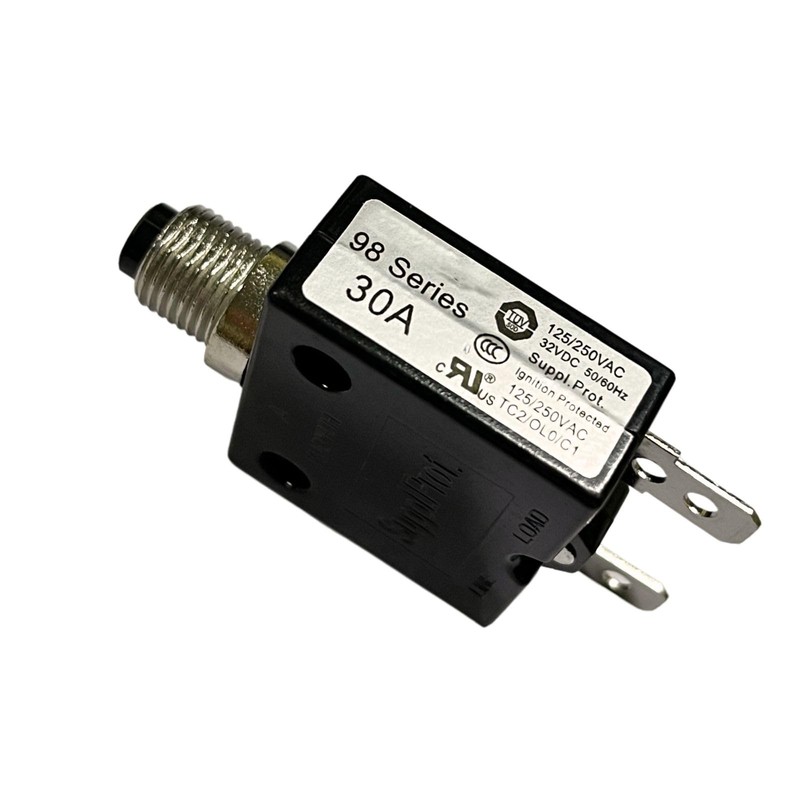 2 Pack 30Amps Push Button Circuit Breaker, 125/250V AC 32V DC 98 Series Manual Reset Thermal Overload Protector with Quick Connect Terminals 30A Circuit Breaker