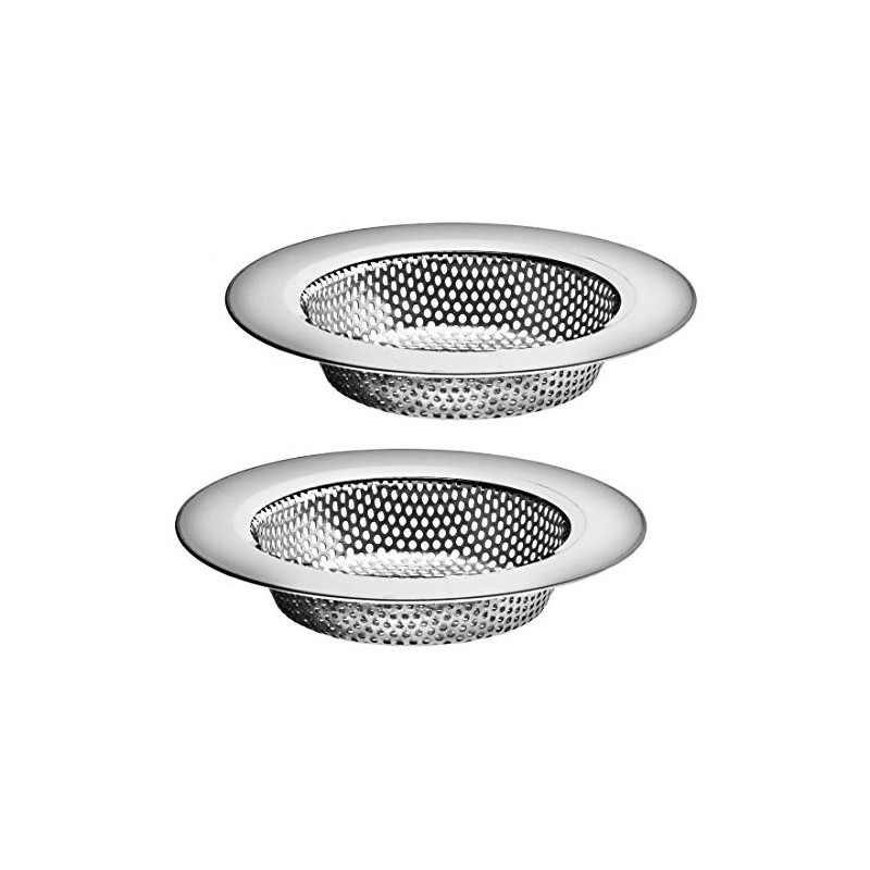 - Comes with metal flat rim to fit over sink's drain. Great for US standard Kitchen Sink. Strainers made of quality rust-resistant, durable and reliable stainless steel. Perfect for sinks for daily usage for long lasting protection against drainage clogging.