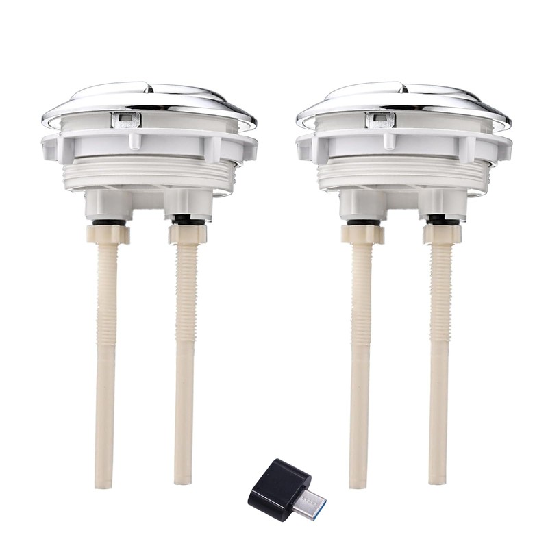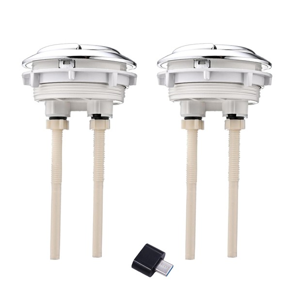 2 Pack 58mm/2.2 inch Dual Push Flushing Toilet Button Toilet Water Tank Button Toilet Button Flush Button Replacement with Thread Diameter Type-C Convertor