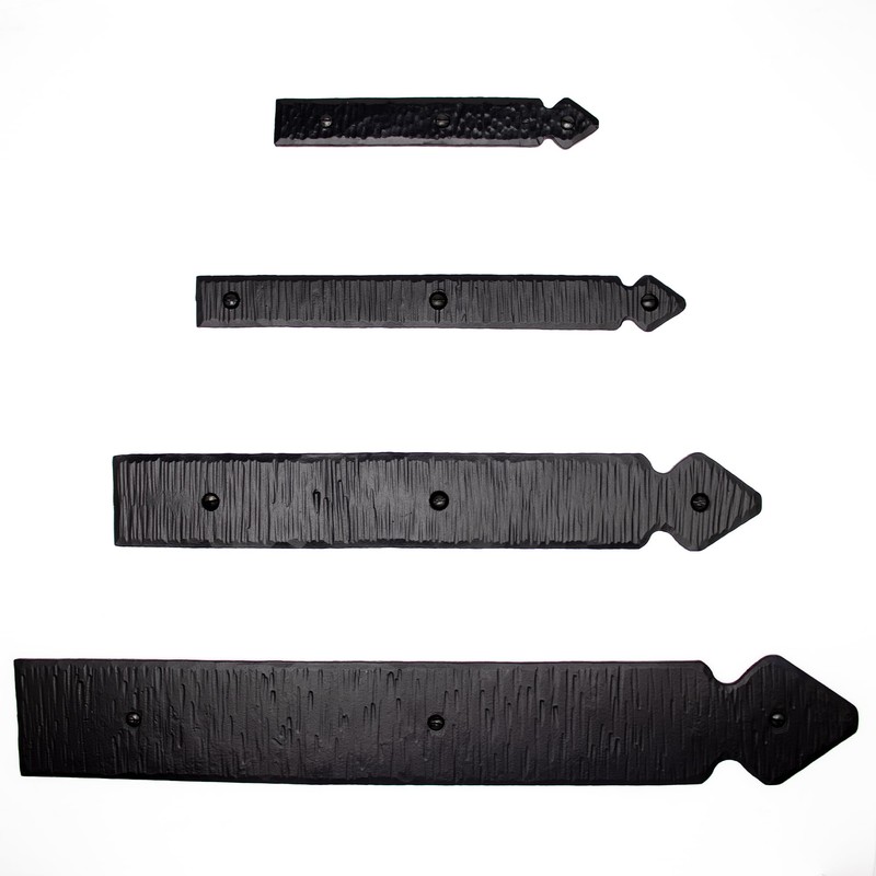 - HANDCRAFTED SOLID IRON HINGE STRAPS - Fabricated using old-world techniques, these heavy-duty black decorative hinges are crafted by experienced metal artisans. Ideal for gates, doors, furniture, and cabinets, these rustic iron hinges add authenticity and farmhouse charm to projects, enhancing your decor with timeless style and strength.