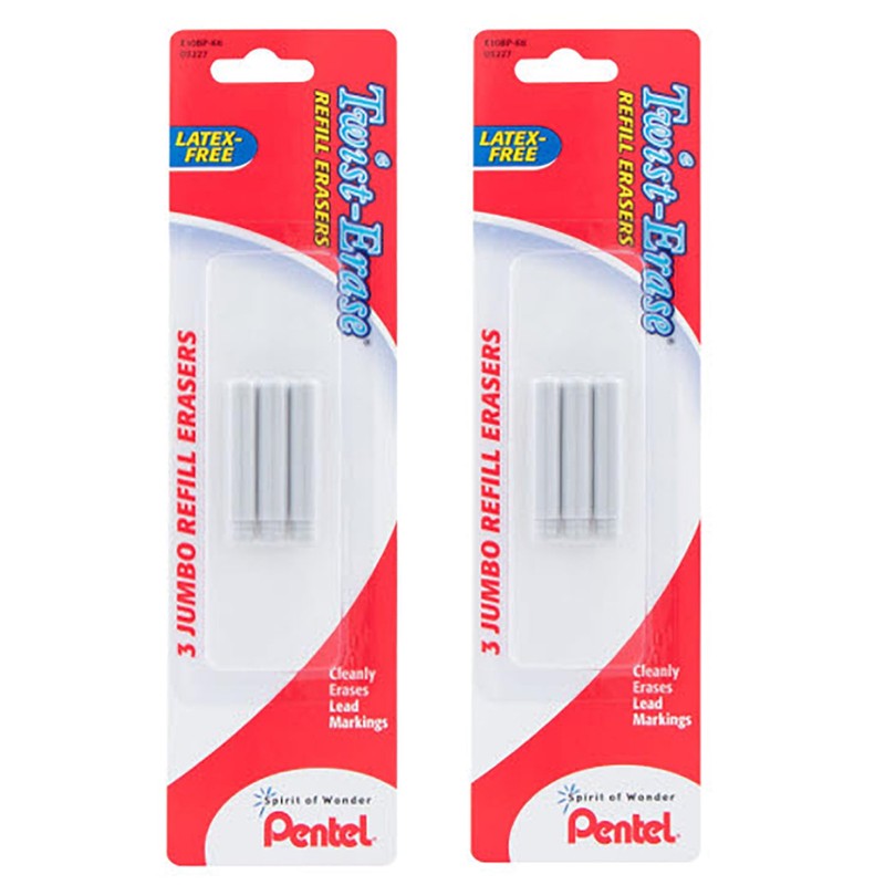 2 PACK - 6 REFILLS Pentel Twist-erase Refill Erasers, Qty 2, Pkg Of 3 .Get the Pentel Twist-Erase Jumbo Refill Erasers at Michaels. com. This automatic pencil has a long-lasting, tall twist-up eraser that is larger than ordinary pencil erasers. Get more out of your automatic pencil! This automatic pencil has a long lasting, tall twist up eraser that is larger than ordinary pencil erasers. Simply twist the barrel to advance and retract eraser and push down on it to advance lead. Details: 3 jumbo erasers Soft latex-free grip Refillable with Pentel Super Hi-Polymer Lead (sold separately) | Pentel Twist-Erase Jumbo Refill Erasers