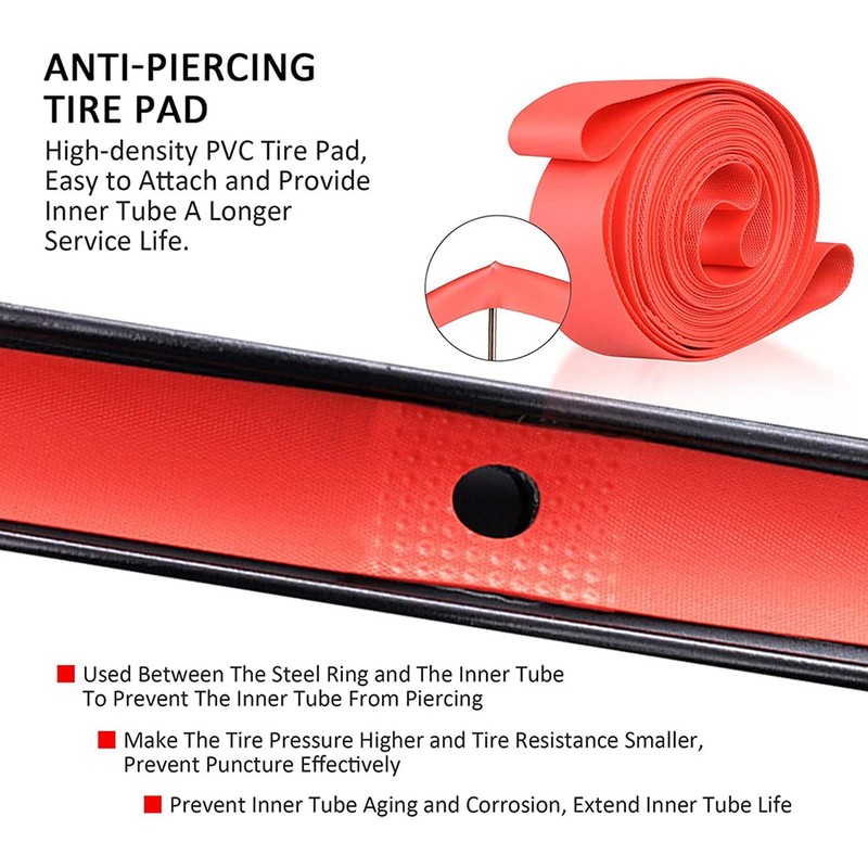 Tire Rim Strips:The anti-puncture bicycle rim strips make the tire pressure higher and tire resistance smaller, effectively protect inner tubes from piercing. It also prevents inner tube aging and corrosion to achieve a longer service life.