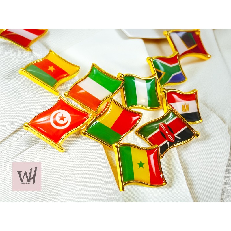- Bundle of Two Distinctive Flag Pins – Includes one lapel pin in the shape of the African continent with your country’s flag and one flag-shaped badge representing your selected country. Perfect for showing your pride in a unique and stylish way.