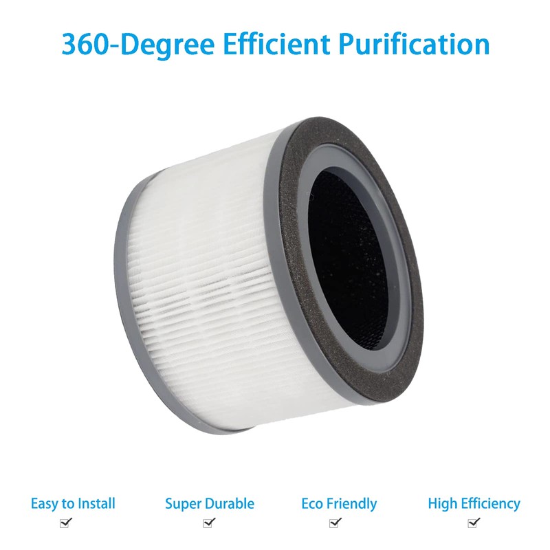 - Filtration System: The high efficient filtration system including fine pre-filter, high quality True HEPA filter and high efficiency activated carbon filter. Pre-filter can capture the larger particles in the air, such as dust, hair, pet fur and more. Activated carbon filter can capture large particles in the air and absorb peculiar smell, such as smoke, pet peculiar smell and more