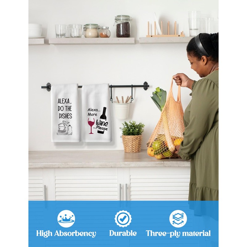 2 Pack Alexa Do The Dishes - Funny Kitchen Towels and Hand Towels, Kitchen Alexa Tea Towels Flour Sack Dish Towels, Kitchen Towel Hostess Gifts for Women Mom Grandma New House Housewarming