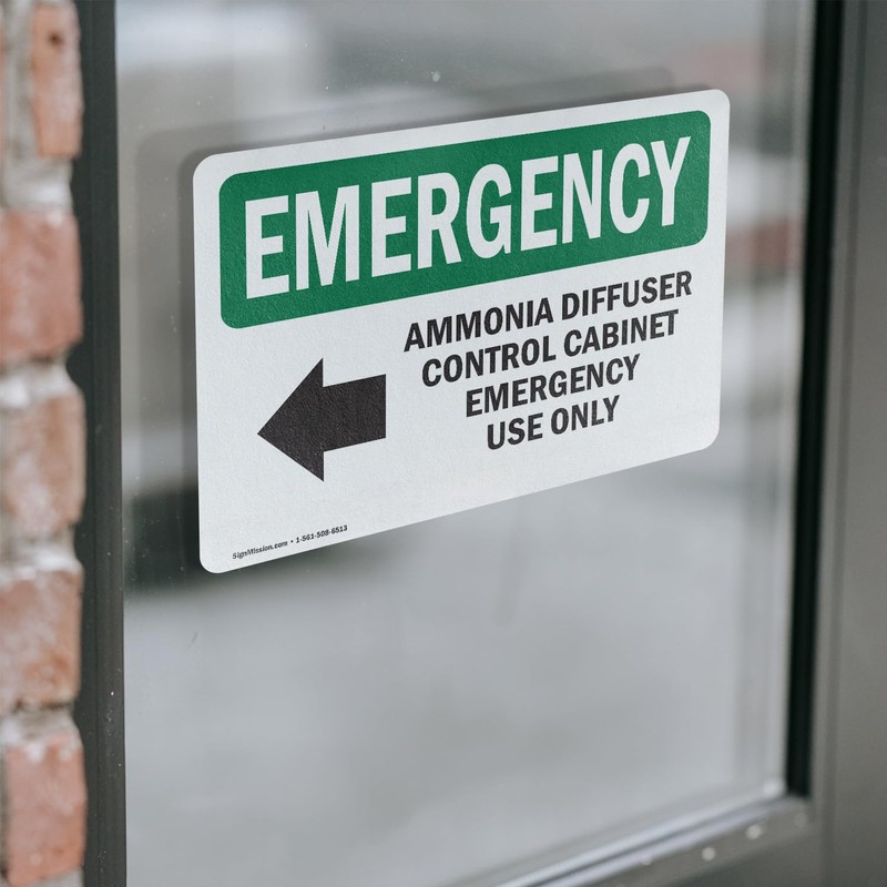 (2 Pack) Ammonia Diffuser Control With Symbol OSHA Emergency Sign 10 Inch X 7 Inch Vinyl Label Decal Sticker Weather Resistant, UV Protected for Workplace, Business, Construction Site, Made in the USA