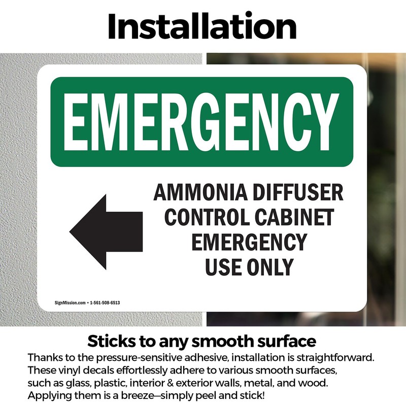 (2 Pack) Ammonia Diffuser Control With Symbol OSHA Emergency Sign 10 Inch X 7 Inch Vinyl Label Decal Sticker Weather Resistant, UV Protected for Workplace, Business, Construction Site, Made in the USA