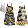 2 Pack Aprons for Women with 3 Pockets, Adjustable Waterproof Kitchen Bib Apron with 2 Towels for Chef Servers Grilling Cooking Baking, Plus Size Sunflower Aprons for BBQ Painting Gardening