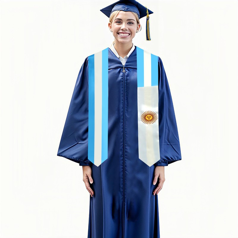 2 Pack Argentina Argentine Nation Flag Graduation Stole, Satin Embroidery Graduation Sash for International Students, 72 Inch Length