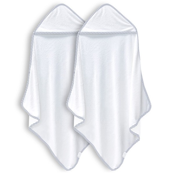 - 2 Pack Baby Bath Towel Rayon Made from Bamboo (White and Stripe, 30 x 30 Inch)