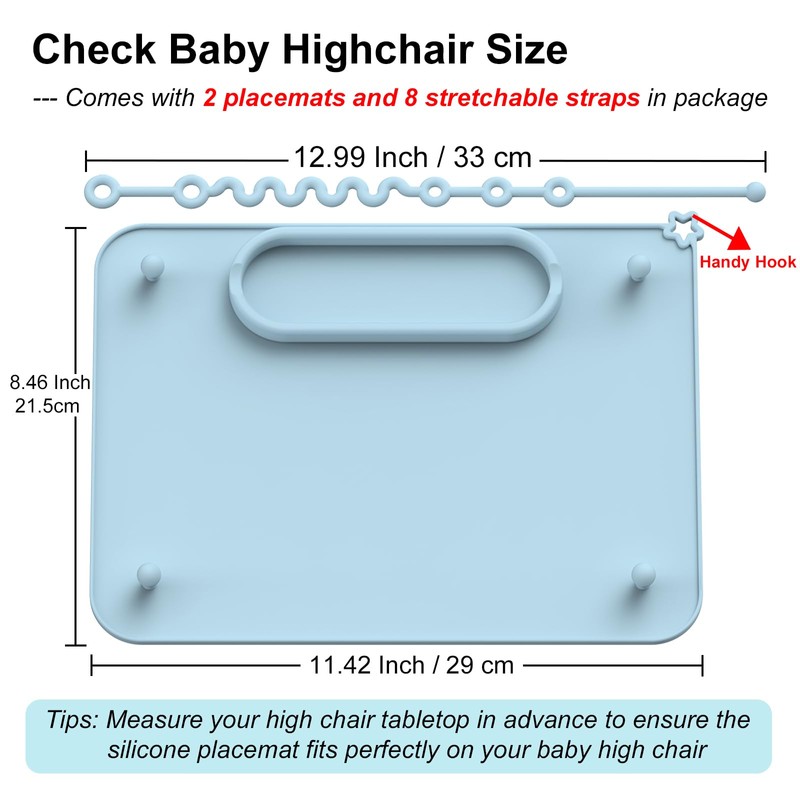 2 Pack Baby Silicone Mat, with Suction Base and 8 Stretchable Straps, Seposeve Baby Placemats, Activity Mat for Infants to Toddlers, Keeps Babies Essentials Off The Floor, Green Blue