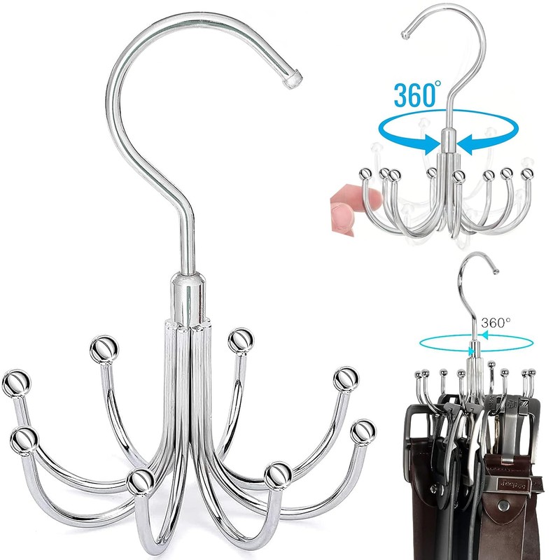 - 🌎[Closet Essential Organizer] Thanks to the unique 8-hook design, each hanger can hang up to 24 belts (3 hooks each).Also suitable for storage bra, tank top, tie, scarf, purse.Just one hanger can solve the problem of troublesome closet accessories.