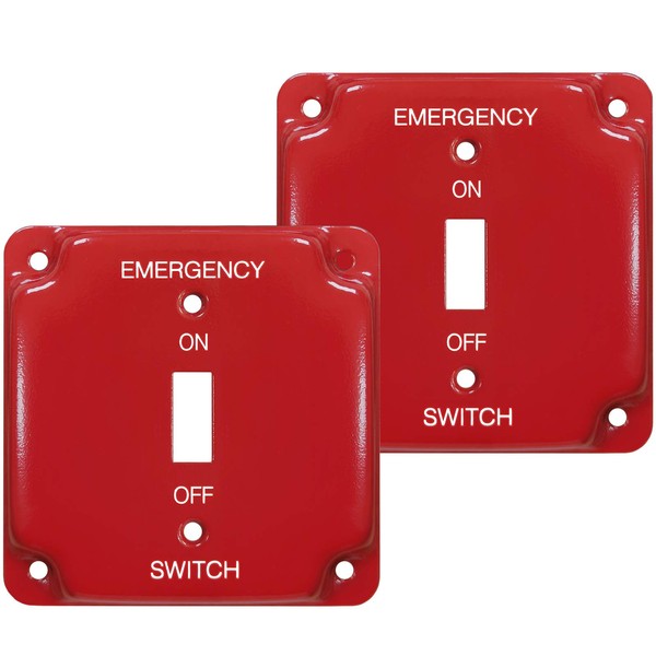[2 Pack] BESTTEN 1-Gang Red, Emergency Shut-Off Toggle Square Metal Switch Plate for 4"x4" Electrical Box, Code Compliant
