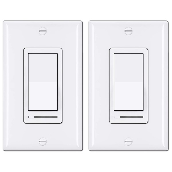 BESTTEN 2 Pack Dimmer Light Switch, Universal Lighting Control, Single Pole or 3 Way, Compatible with LED Dimmable Lamp, CFL, Incandescent, Halogen Bulb, Decorator Wallplate Included, UL Listed, White