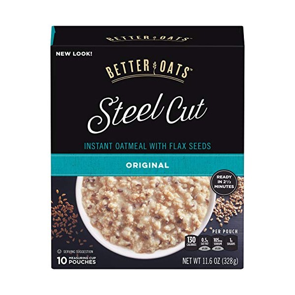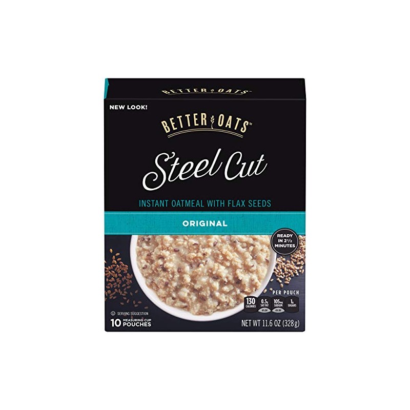 2 pack Better Oats, Steel Cut Classic Instant Oatmeal With Flax, 10 Ct Box