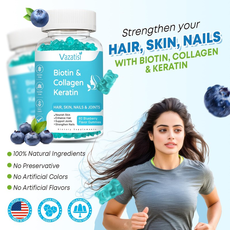 - [Why Vazatisi? 100% Happiness] Our natural biotin gummies supplement are manufactured, tested and bottled in a GMP-certified facility with the highest quality and safety. We are confident you will love Vazatisi's collagen gummies with biotin. Any questions please contact us directly via email, our US-based "online" support team will take care of you right away.