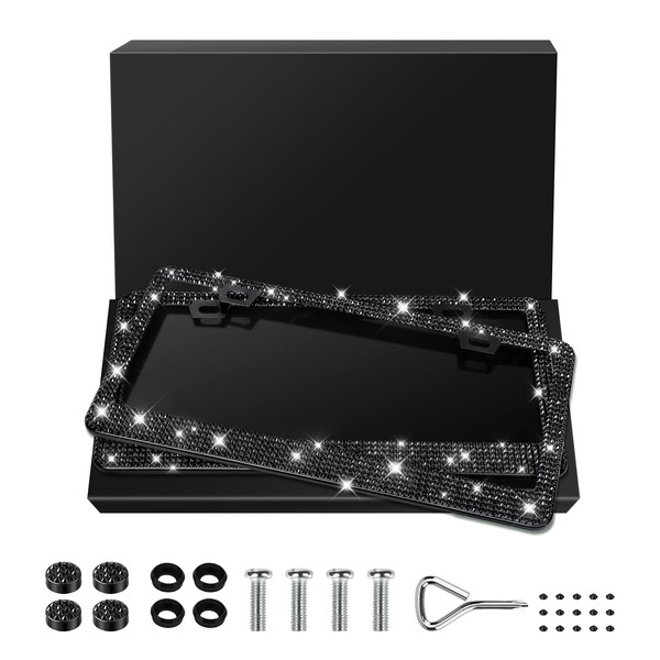 2 Pack Bling License Plate Frames for Women,Sparkly Rhinestone Diamond Car License Plate Frame (Black)