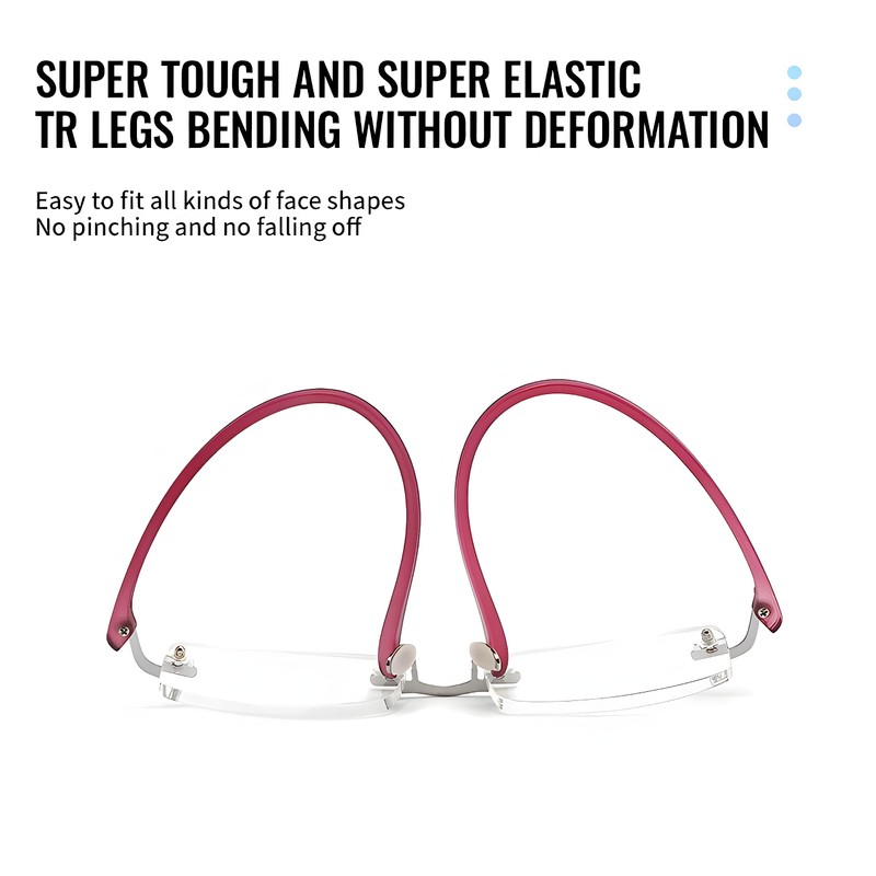 - 【Fashionable Frameless Reading Glasses】: Simple frameless design makes you look professional and stylish while working orading. If you want to stand out from the crowd and want a sophisticated look, these semi-rimless reading glasses are a great choice for you.