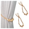 2 Pack Boho Jute Coil Ball Curtain Tiebacks with Wood Beads Handmade Weave Rope Curtain Holders Window Drapes Holdbacks Strap Coffee