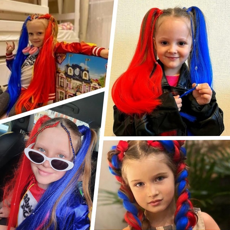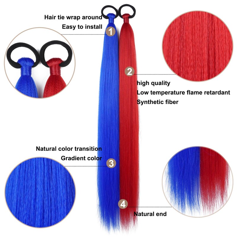 - Colored Ponytail Hair Extensions: Vibrant and Delight Red Blue Contrast for Instant Highlights for Girls