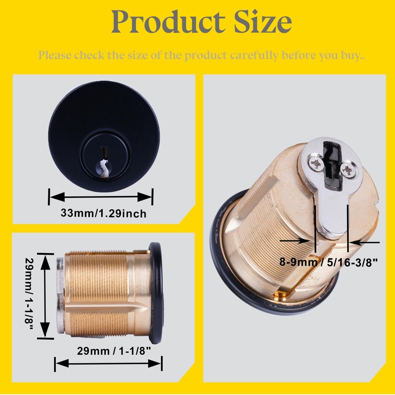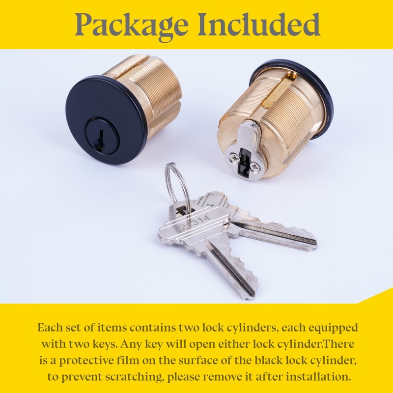 - Great 2-Pack Deal with 4 Universal Keys:Premium 1-1/8" inch length 5 pin tumbler with a thread size of 1.150 x 32 UNS 2 SC1 keyway keys 2 keyed alike keys per cylinder. This set comes with 2 high-quality brass lock cylinders, and each cylinder gets 2 keys—plus, all keys work with both cylinders! No need to juggle multiple key sets for different locks. It’s way easier for daily use, especially in homes or offices where you want simple key management. Enjoy the convenience of "one key opens multiple locks" effortlessly.