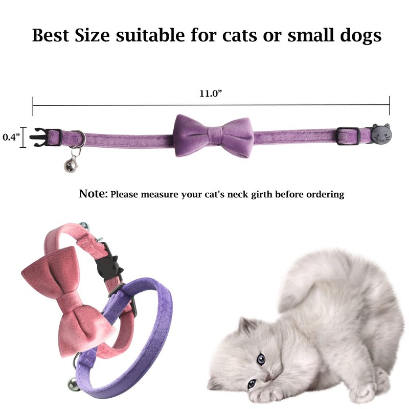 • 💕Eye-catching Design: The Package is include 2 pack cat collar, Unique velvet material, comfortable and durable.Besides that,the collar is designed with lovely bow tie,which could make your cats look more fashionable.