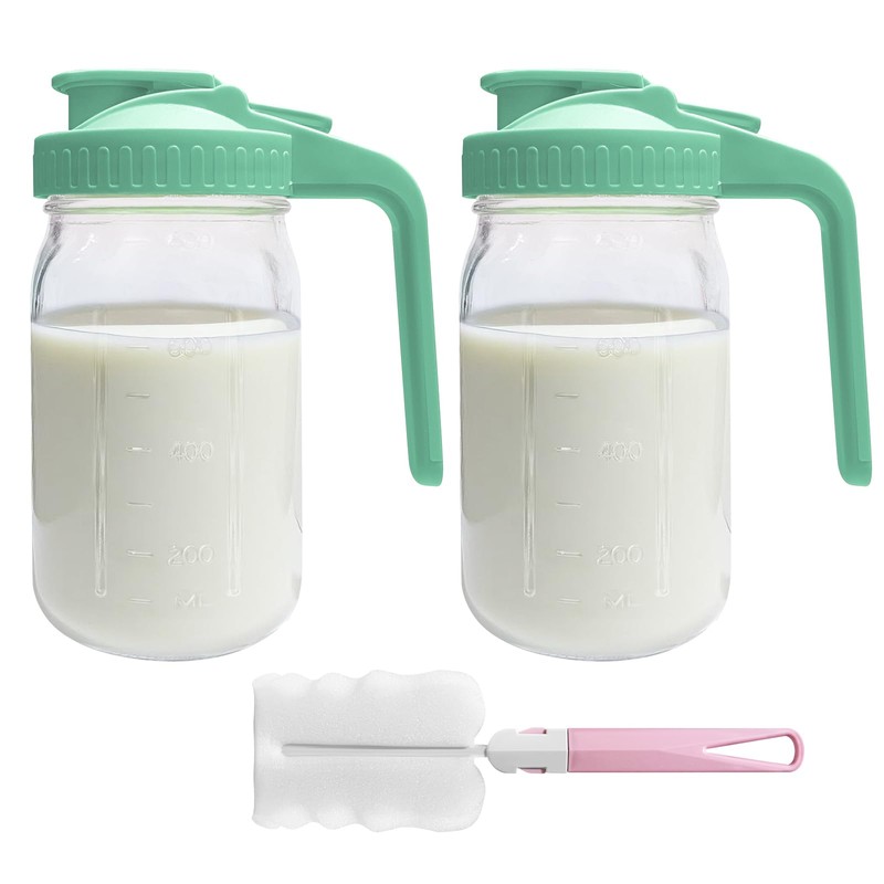 - PACKAING LISTS: Includes 2 Pack 32oz wide-mouth glass breast milk pitchers with flip top lids and 1 pack of cleaning brush for easy cleaning the storage jars