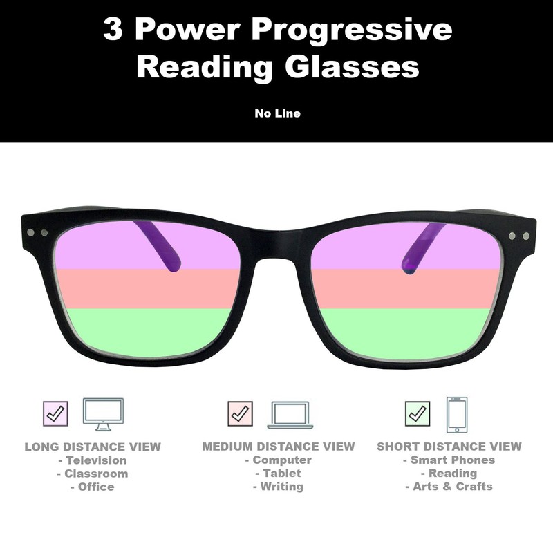 - Progressive Multifocal Lens with 3 Powers in 1