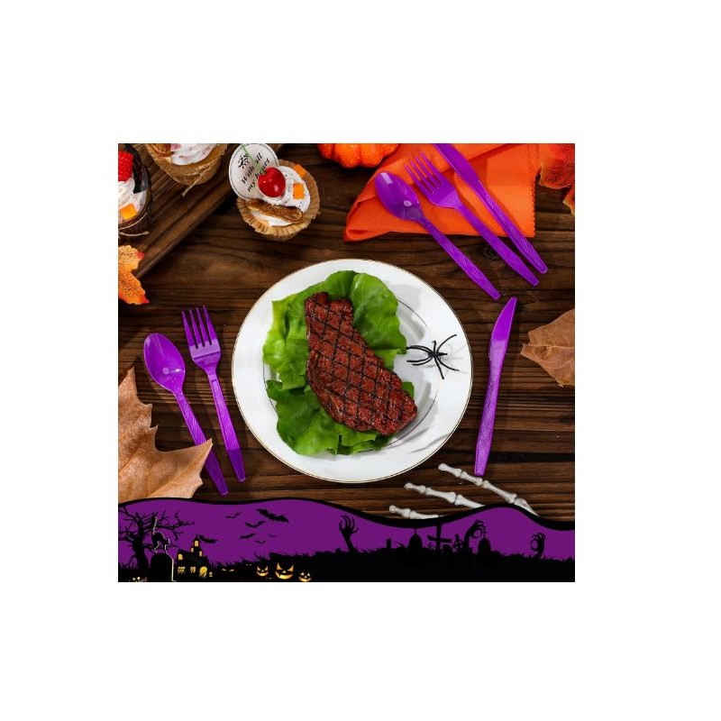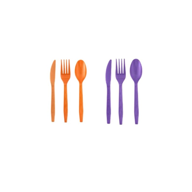 2 Pack Bundle Orange Purple Plastic Utensils Combo Pack - 96 Count Parties Events Durable Disposable Cutlery Cook Serve Kitchen